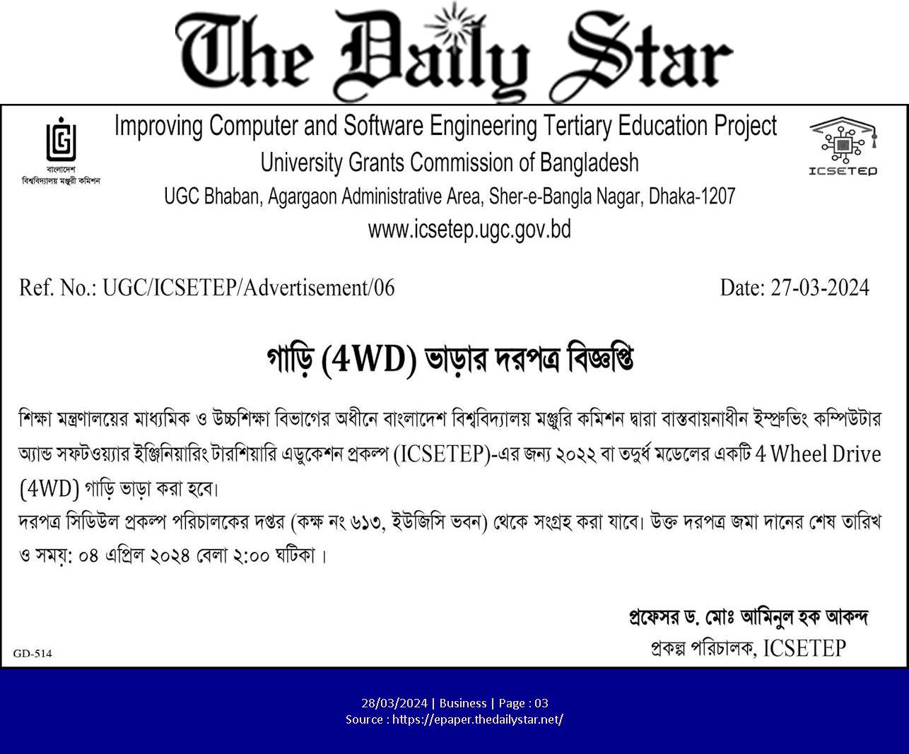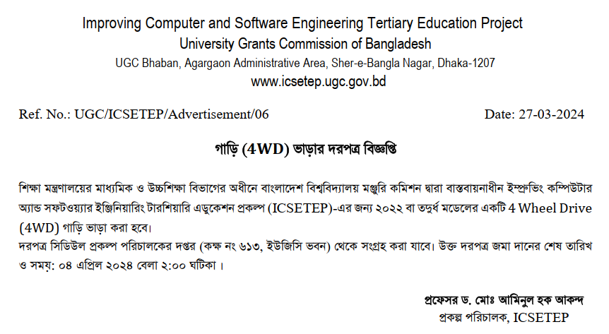 RFQ (Non-consulting Service): Hiring of Vehicle (4WD) for PMU