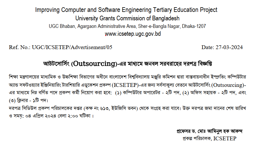 RFQ (Non-consulting Service): Outsourcing of Support Staff for PMU, UGC